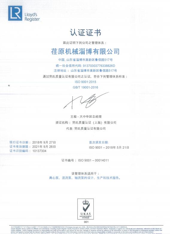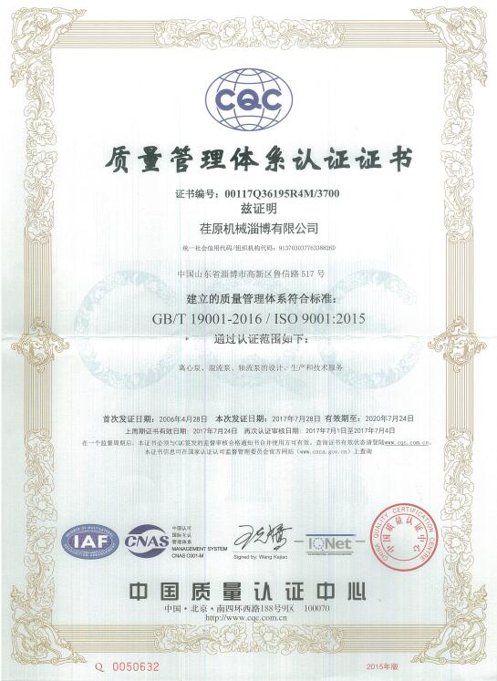 • Quality Management System Certificate