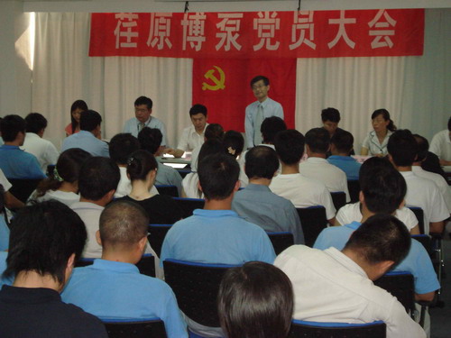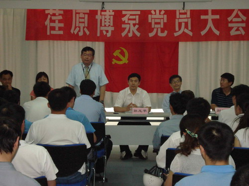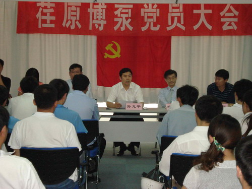 7月27日,對于荏原博泵泵業(yè)有限公司來說是一個值得紀(jì)念的日子,這一天,荏原博泵召開了第一次黨員大會,全體黨員參加會議并重溫了入黨誓言,鮮紅的黨旗第一次在這家中日合資企業(yè)高高掛起。