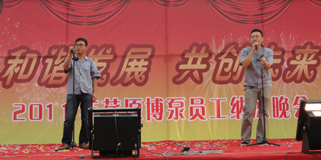 舞蹈《開門紅》寄托著荏原博泵員工對公司發(fā)展前景的美好期盼,展示了公司女職工的風采。20多名復員軍人用一首《咱當兵的人》抒發(fā)了他們保家衛(wèi)國、貢獻企業(yè)的豪情與壯志;研發(fā)部、技術部員工帶來的歌曲《跳起來》,展示了年輕人的青春與活力;質量保證部員工在部長岳東海帶領下,演唱了歌曲《相親相愛一家人》,演繹著荏原博泵大家庭的親情、友情。友情樂隊帶來的動感十足的歌曲,更是將晚會的氣氛烘托到高潮。