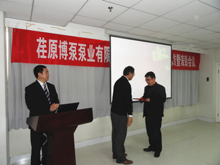 2014年1月15日,公司營(yíng)業(yè)工作總結(jié)及表彰大會(huì)在辦公樓培訓(xùn)室如期召開(kāi)。會(huì)議由營(yíng)業(yè)部部長(zhǎng)趙小豪主持。邵長(zhǎng)宏副總經(jīng)理做營(yíng)業(yè)工作報(bào)告,王正軍常務(wù)副總經(jīng)理、志賀進(jìn)總經(jīng)理分別在會(huì)上講話。